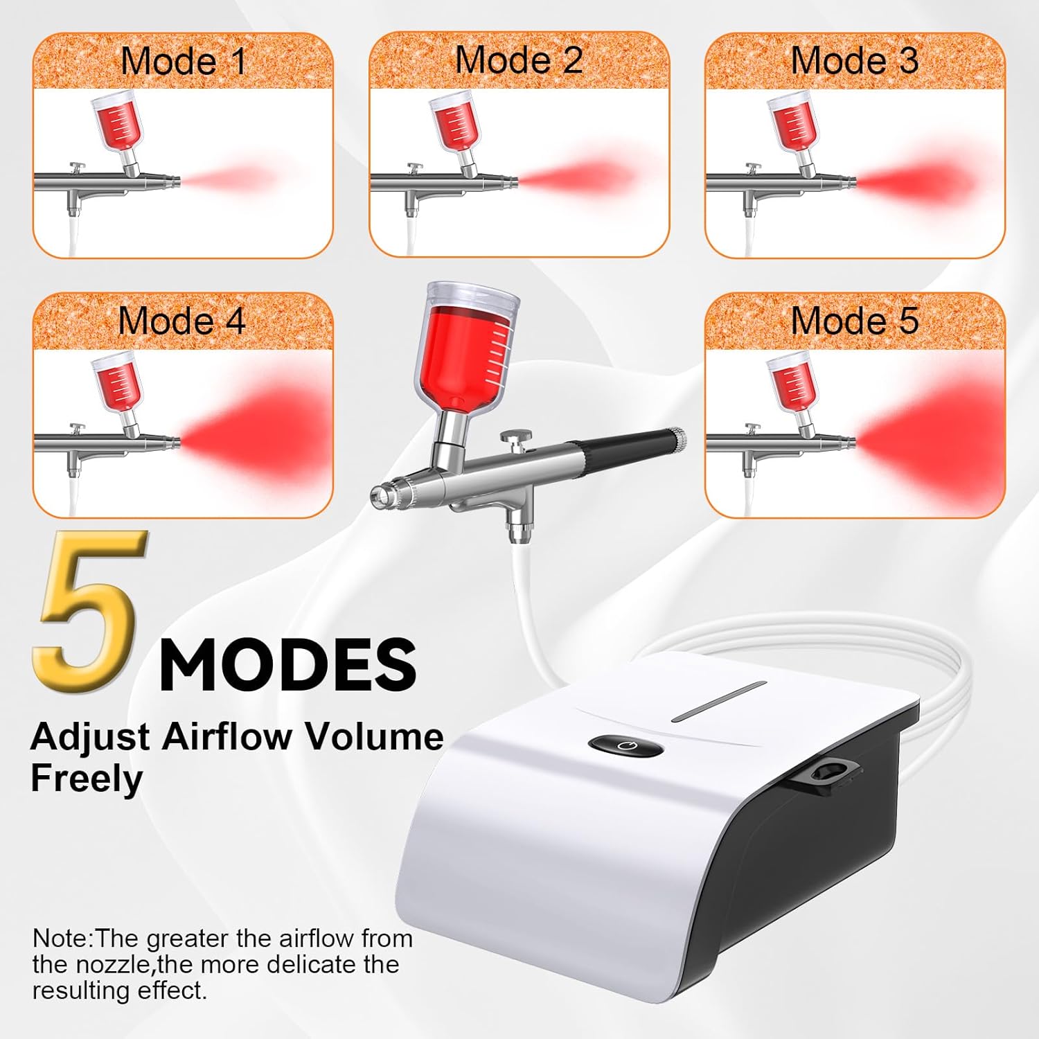 π¨ Total Creative Control: The quiet, reliable compressor features 5 adjustable airflow settings from low to high. Go from a wide, gentle spray for base coats to a fine, detailed line for intricate work.